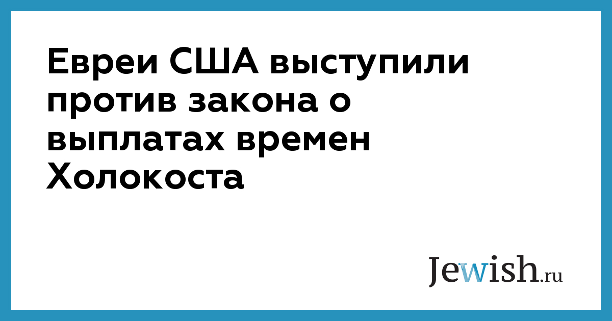 В письме еврейских организаций говорится, что этот закон навредит переговорам с Германией, которая выплачивает сотни миллионов долларов тем пережившим Холокост, кто живет в нищете, поскольку возвращает к ранее достигнутым договоренностям.