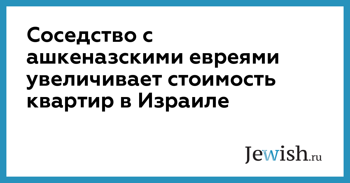 Соседство с ашкеназскими евреями увеличивает стоимость квартир в Израиле