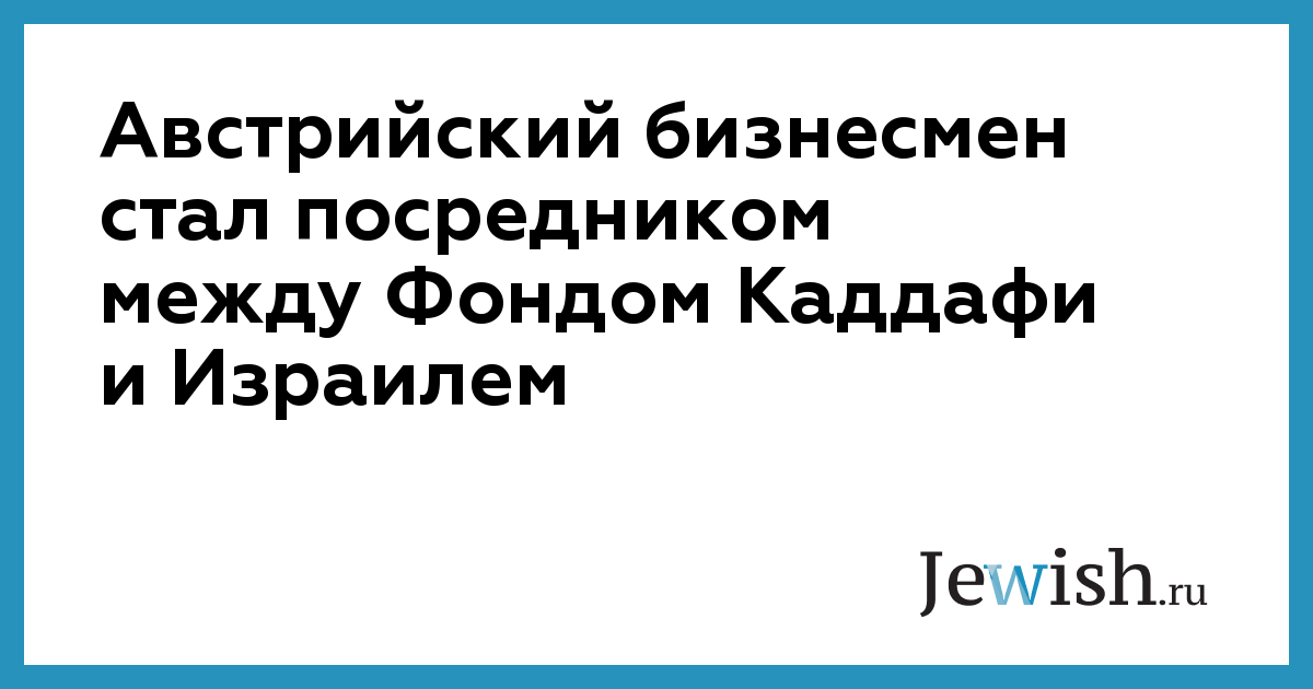 Австрийский бизнесмен стал посредником между Фондом Каддафи и Израилем