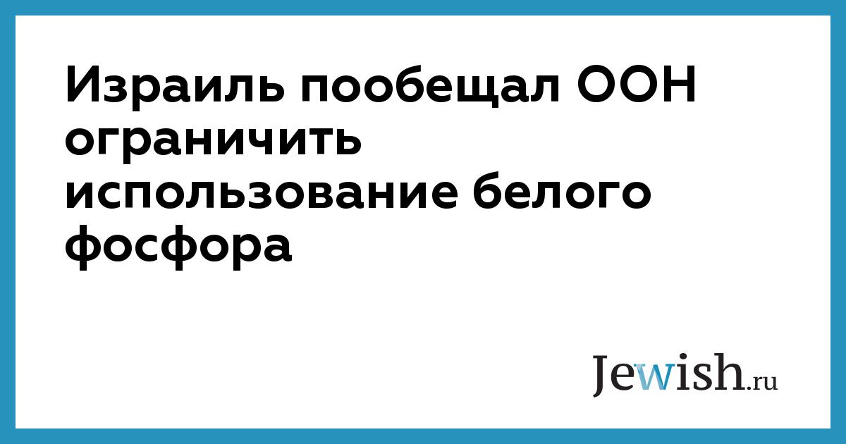 Израиль уведомил ООН о том, что постарается ограничить использование белого фосфора во время ведения войн, несмотря на то, что США и Россия активно пользуются преимуществами этого материала в военных целях, сообщает