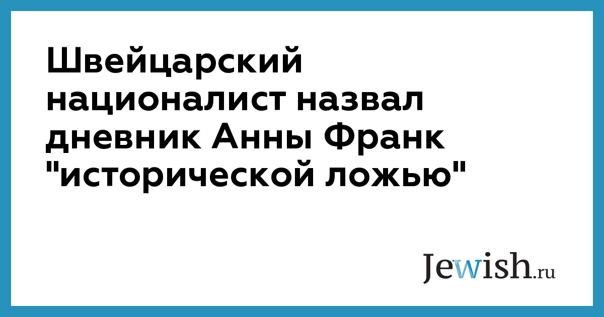 Партия швейцарских националистов на своем официальном сайте разместила некоторое время назад текст бывшего лидера базельской секции партии, в котором автор назвал известный на весь мир дневник Анны Франк "исторической ложью".