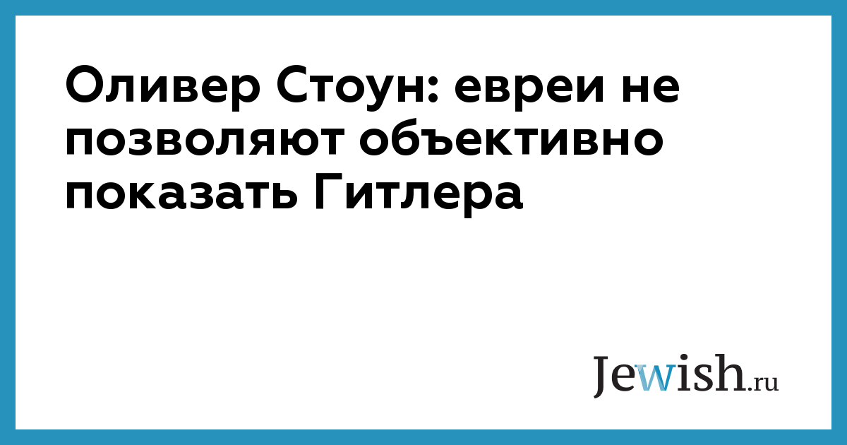 Оливер Стоун: евреи не позволяют объективно показать Гитлера
