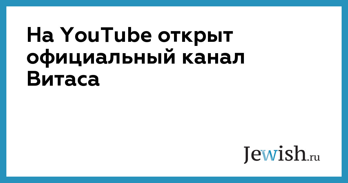 На YouTube открыт официальный канал Витаса