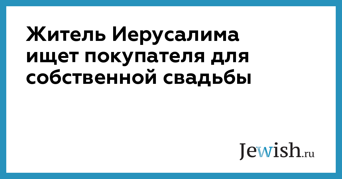 Житель Иерусалима ищет покупателя для собственной свадьбы
