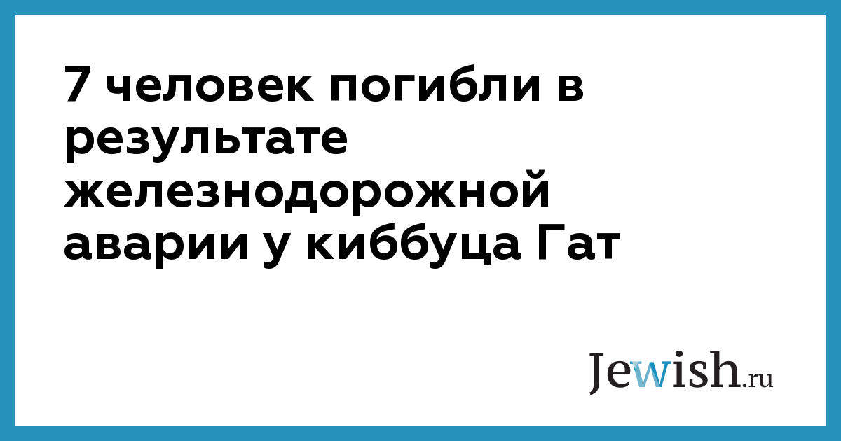 В результате столкновения поезда с микроавтобусом, произошедшего вечером в четверг, 5 августа, на железнодорожном переезде в районе киббуца Гат, расположенного к северу от Кирьят-Гата, погибли семь членов одной семьи: Арье Бернштейн (45), его жена Ривка (44), их дочери Малка (21) и Хая Гения(15), их сыновья Йоханан (16) и Мордехай (8), и их внук Мордехай-Аарон (1,5).