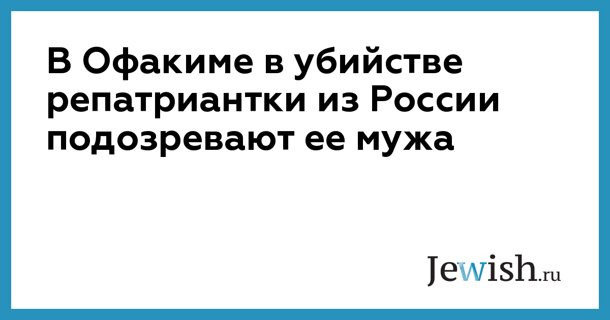 По подозрению полиции, убийцей 50-летней репатриантки Риты Лобачевой, которая вчера во второй половине дня была найдена мертвой в своей квартире в Офакиме с колотыми и резаными ранами, является ее муж. Тело женщины было обнаружено прибывшим в квартиру родственником, который вызвал полицию.