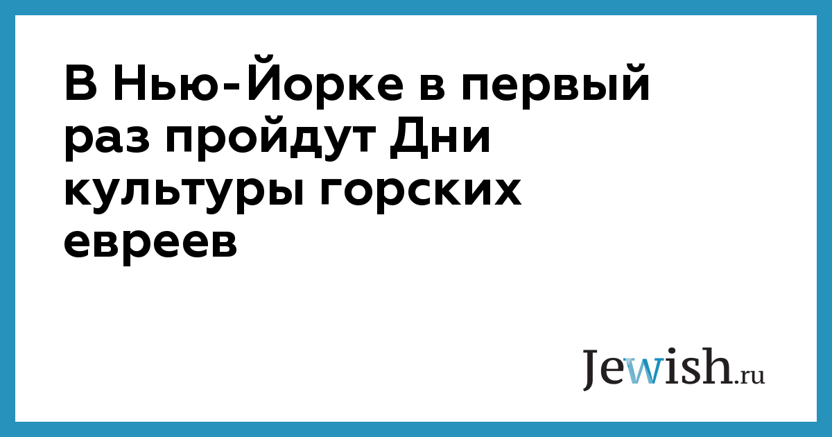 В Нью-Йорке в первый раз пройдут Дни культуры горских евреев