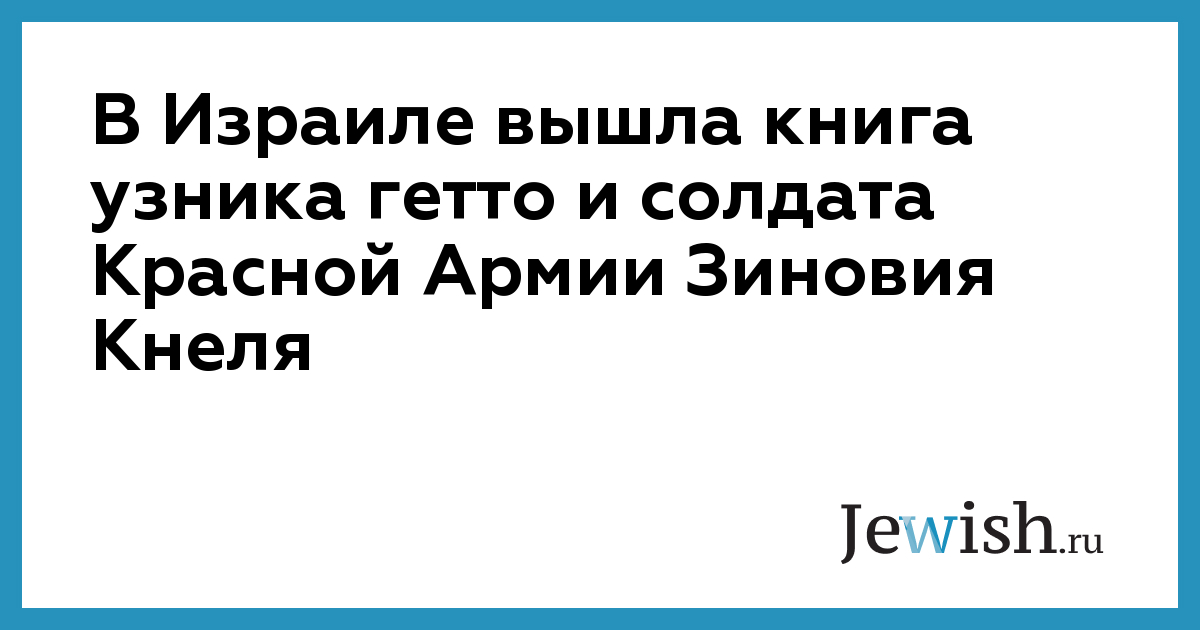 В Израиле вышла книга узника гетто и солдата Красной Армии Зиновия Кнеля