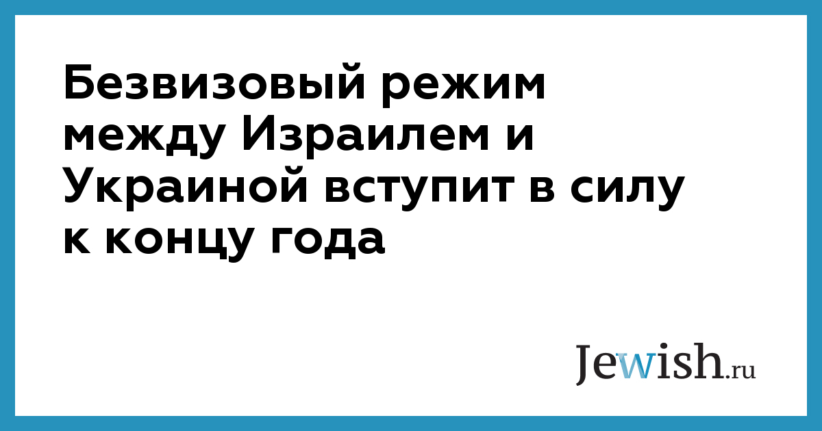 Безвизовый режим взаимных поездок между Украиной и Израилем вступит в силу к концу нынешнего года. Об этом заявила посол Израиля на Украине Зина Калай-Клайтман. Ранее говорилось о том, что соглашение заработает уже осенью, но посол указывает на сложность формальных процедур.