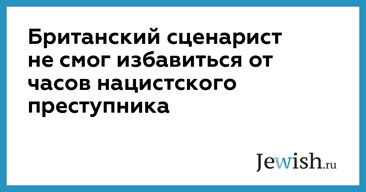 Лоренс Маркс, британский сценарист еврейского происхождения, на страницах газеты The Daily Mail рассказывает историю своих наручных часов, из-за которых он оказался перед непростой дилеммой. Спустя почти 20 лет после покупки сценарист обнаружил, что часы принадлежали нацистскому преступнику Иоахиму фон Риббентропу, советнику Гитлера по внешней политике. Ни одна еврейская организация не согласилась принять деньги, вырученные за их продажу.
