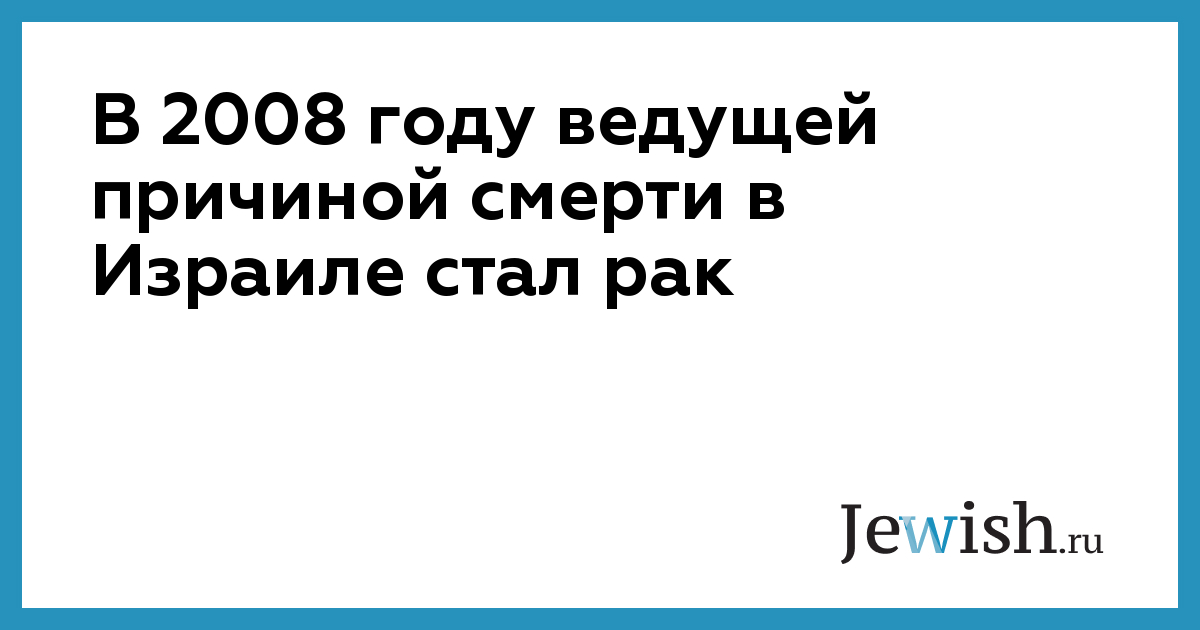 Согласно данным, опубликованным вчера Центральным статистическим бюро Израиля, в 2008 году ведущей причиной смерти в стране являлись онкологические заболевания, от которых умерли 10 124 человека (25,8% всех смертей). Второе место в этом печальном рейтинге занимают болезни сердца, от которых умерли 6782 человека (17,3% всех смертей).