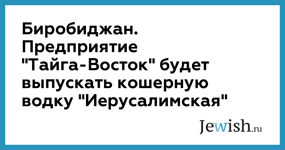 Биробиджан. Предприятие "Тайга-Восток" будет выпускать кошерную водку "Иерусалимская"