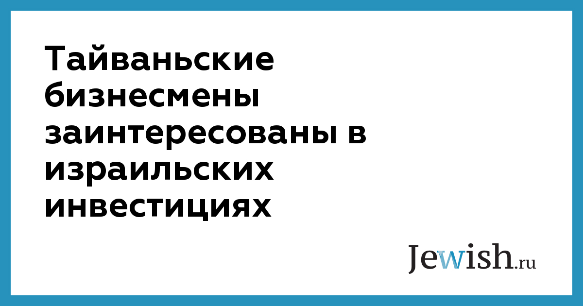 Тайваньские бизнесмены заинтересованы в израильских инвестициях