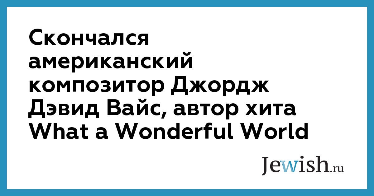 Скончался американский композитор Джордж Дэвид Вайс, автор хита What a Wonderful World
