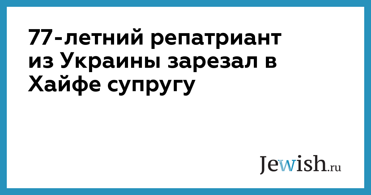 77-летний репатриант из Украины зарезал в Хайфе супругу