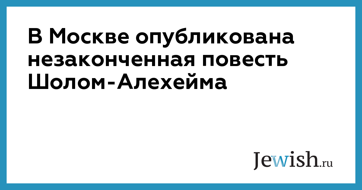 В Москве опубликована незаконченная повесть Шолом-Алехейма
