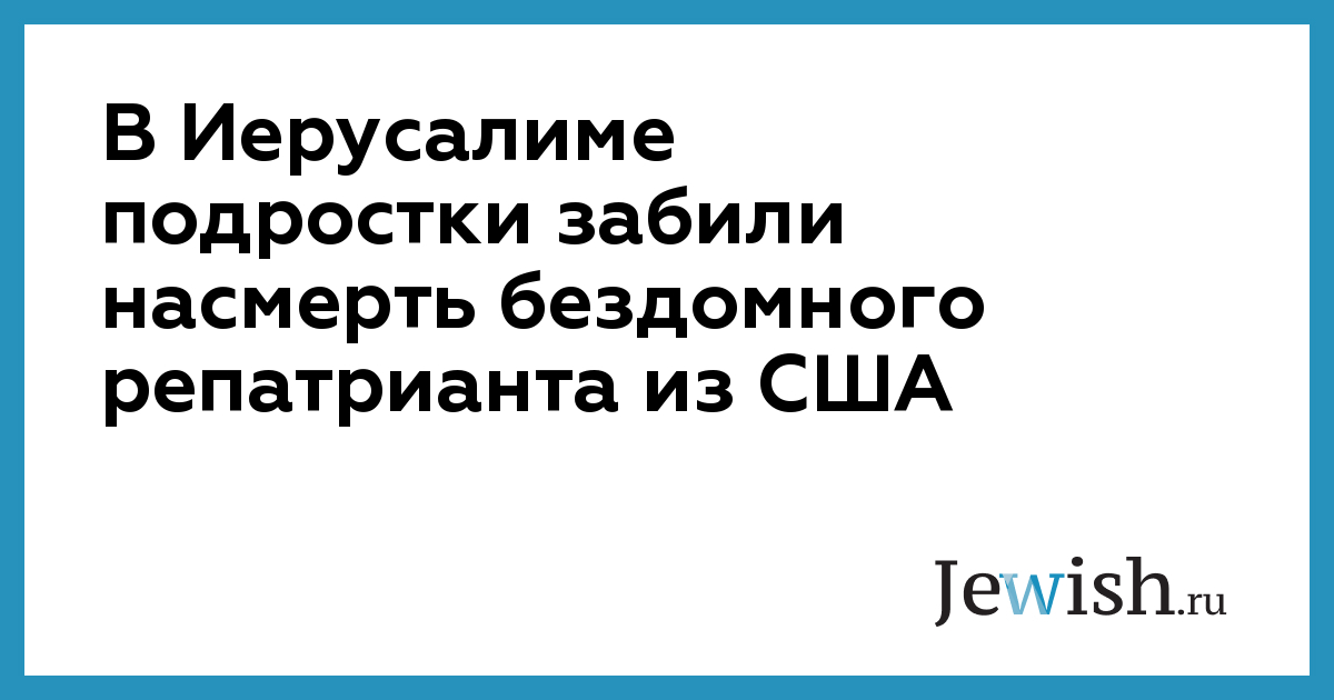 В Иерусалиме подростки забили насмерть бездомного репатрианта из США
