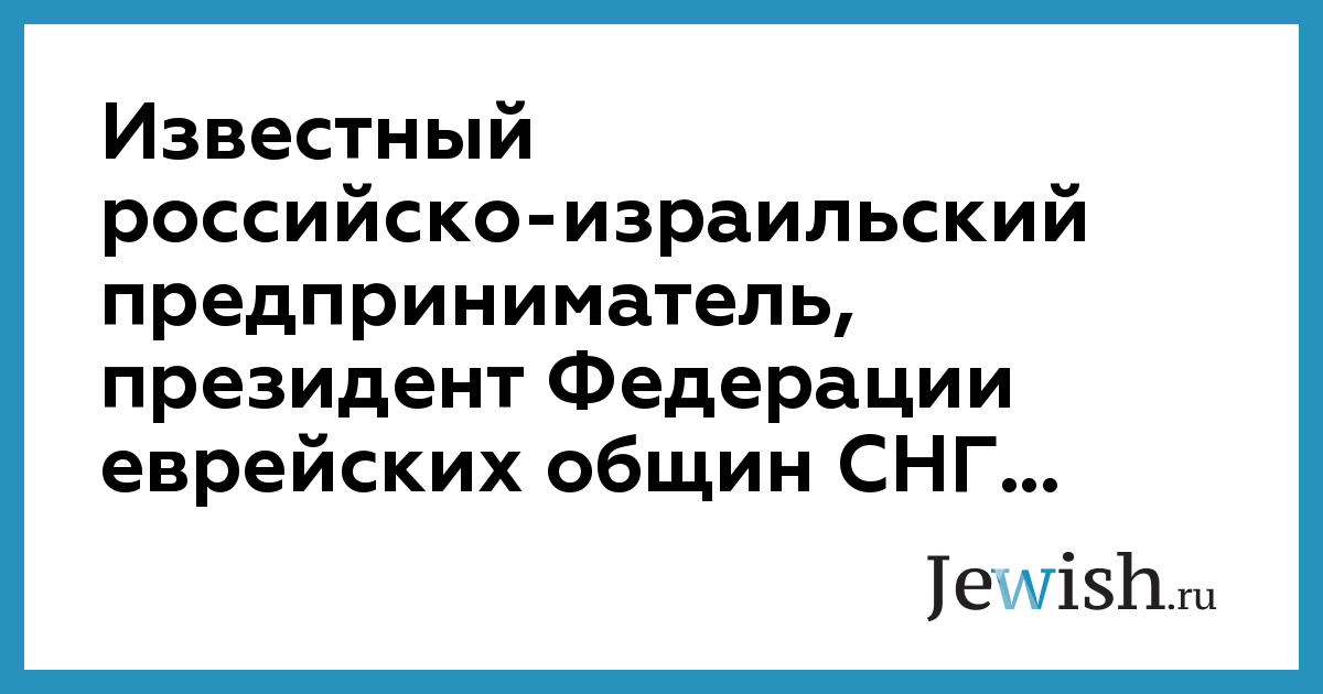Известный российско-израильский предприниматель, президент Федерации еврейских общин СНГ...