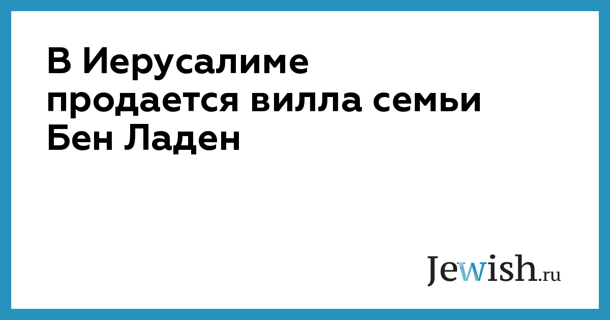 В Иерусалиме продается вилла семьи Бен Ладен