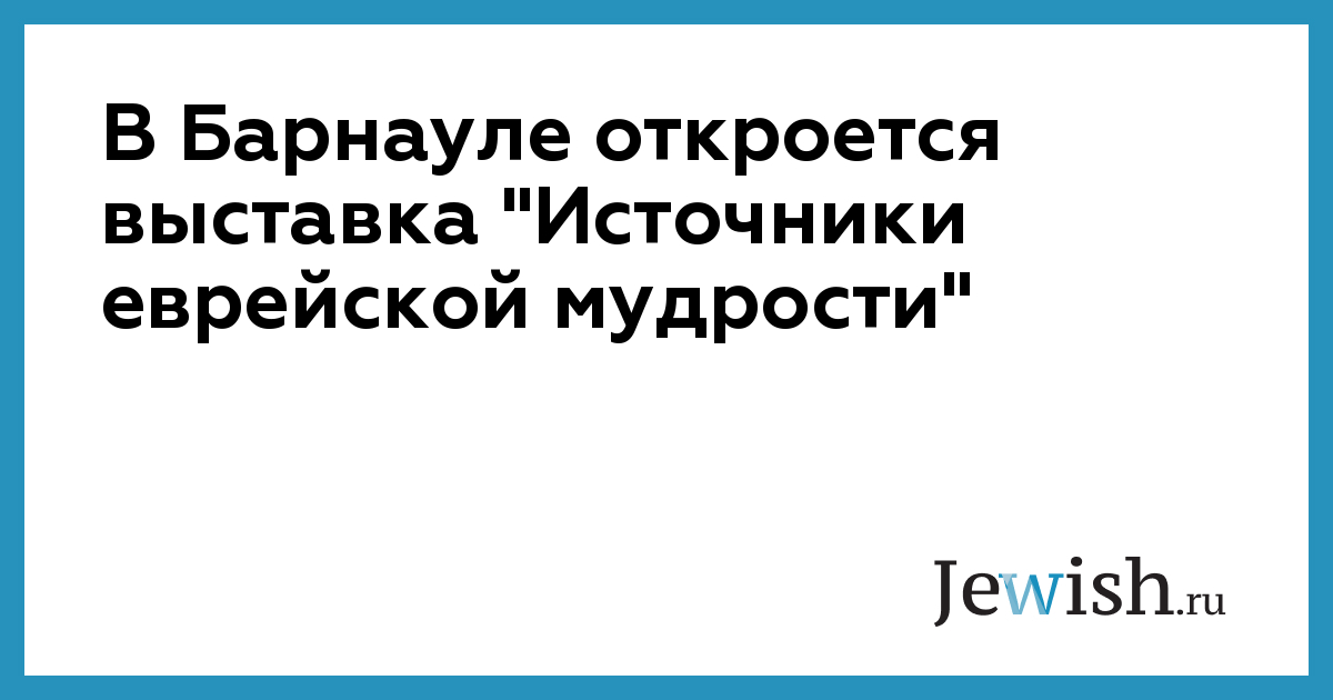 В Барнауле откроется выставка "Источники еврейской мудрости"