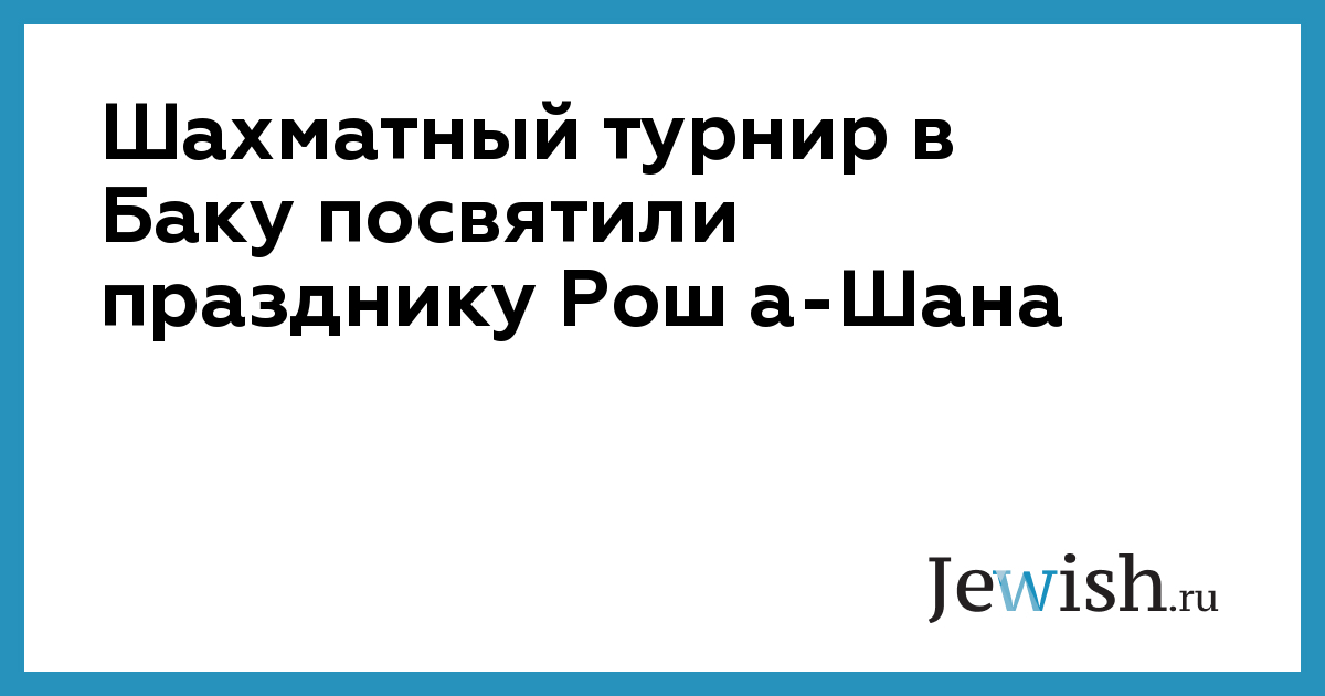 Вчера в Баку в Республиканском шахматном Центре начался трехдневный Международный шахматный турнир, посвященный празднику Рош а-Шана. Участие в турнире, организованном культурно-спортивным обществом "Маккаби-Азербайджан", принимают 64 юных спортсмена из Азербайджана, России, Польши, Турции и Боснии и Герцеговины.