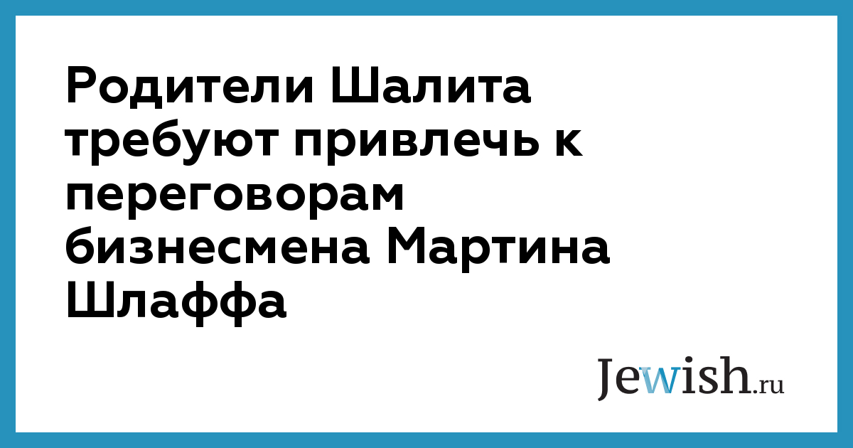 Ноам и Авива Шалит просили главу правительства привлечь к переговорам австрийского миллиардера еврейского происхождения Мартина Шлаффа, пользующегося уважением в арабском мире. Шлафф, в частности, поддерживает отношения с лидером ХАМАСа Халидом Машалем, с главой египетской разведки Омаром Сулейманом, с президентом Сирии Башаром Асадом и с ливийским лидером Муаммаром Каддафи.