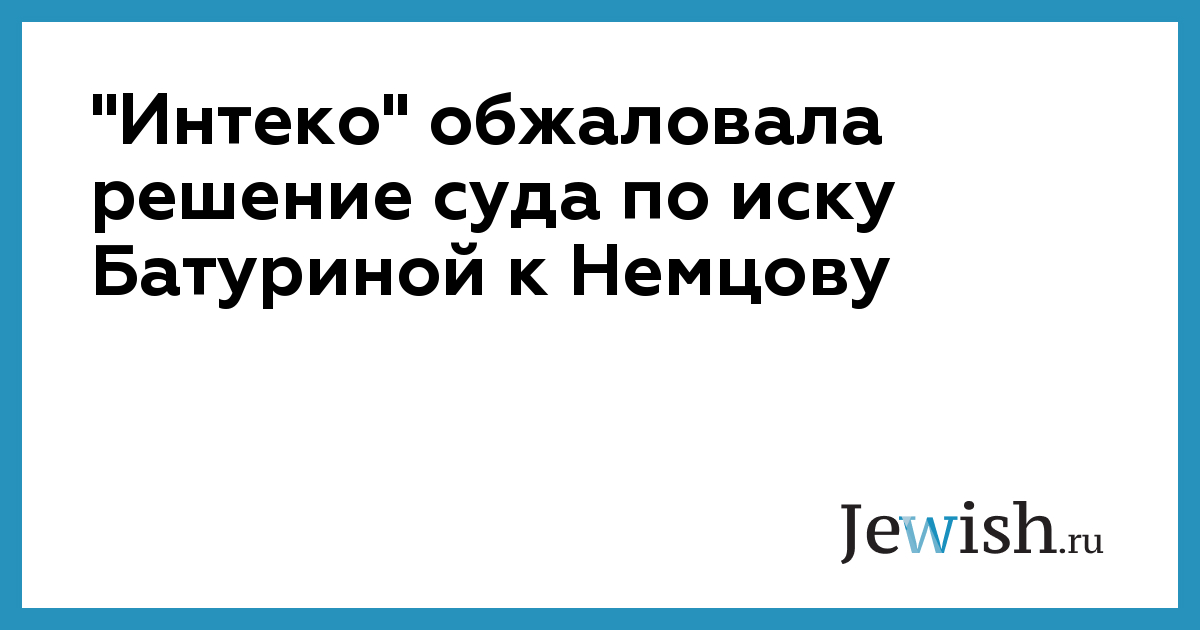 "Интеко" обжаловала решение суда по иску Батуриной к Немцову