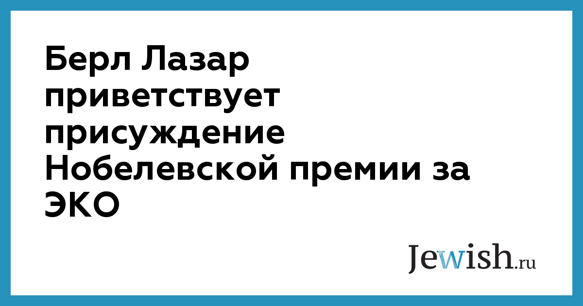 Главный раввин России Берл Лазар приветствует решение о присуждении Нобелевской премии 2010 года по медицине британскому ученому Роберту Эдвардсу за технологию экстракорпорального оплодотворения (ЭКО), сообщил вчера пресс-секретарь главного раввина Андрей Глоцер.