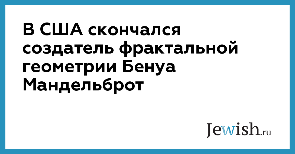 Выдающийся математик, создатель теории фракталов Бенуа Мандельброт скончался в 14 октября в США в возрасте 85 лет, сообщает в воскресенье агентство UPI. Как сообщила агентству жена ученого, он долгое время болел раком поджелудочной железы и умер в четверг в городе Кембридж штата Массачусетс.