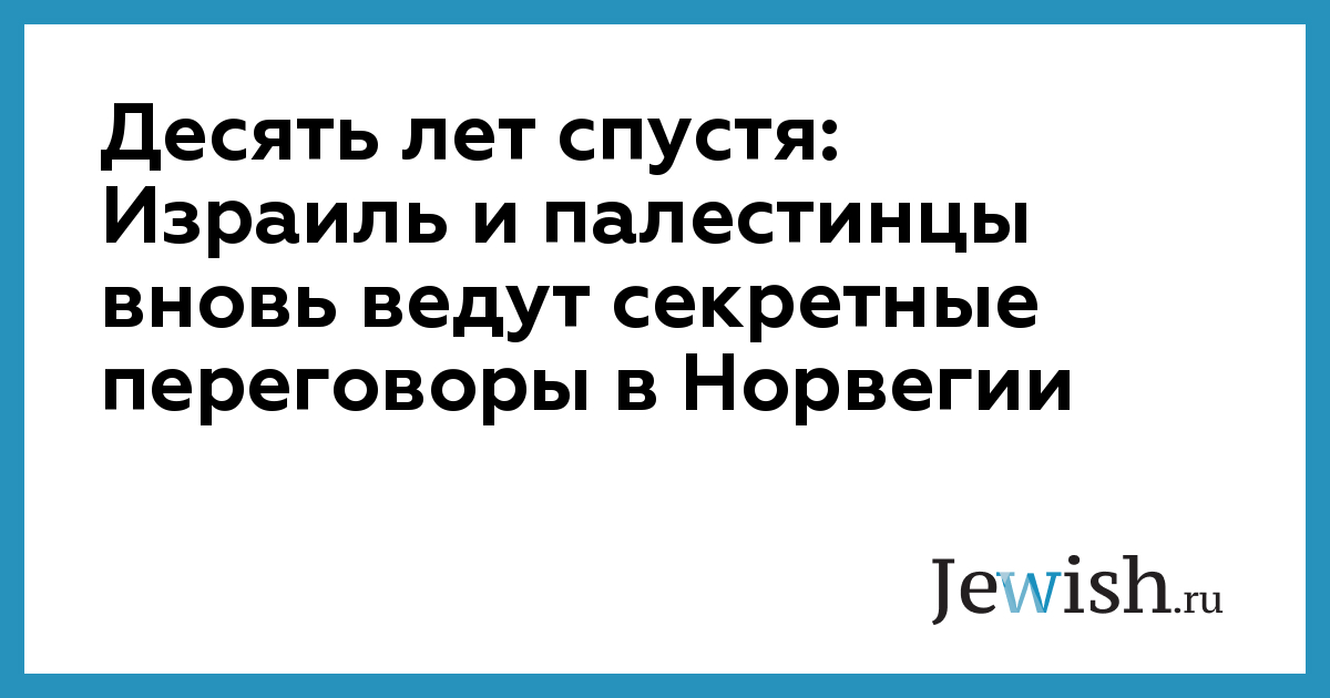 Десять лет спустя: Израиль и палестинцы вновь ведут секретные переговоры в Норвегии
