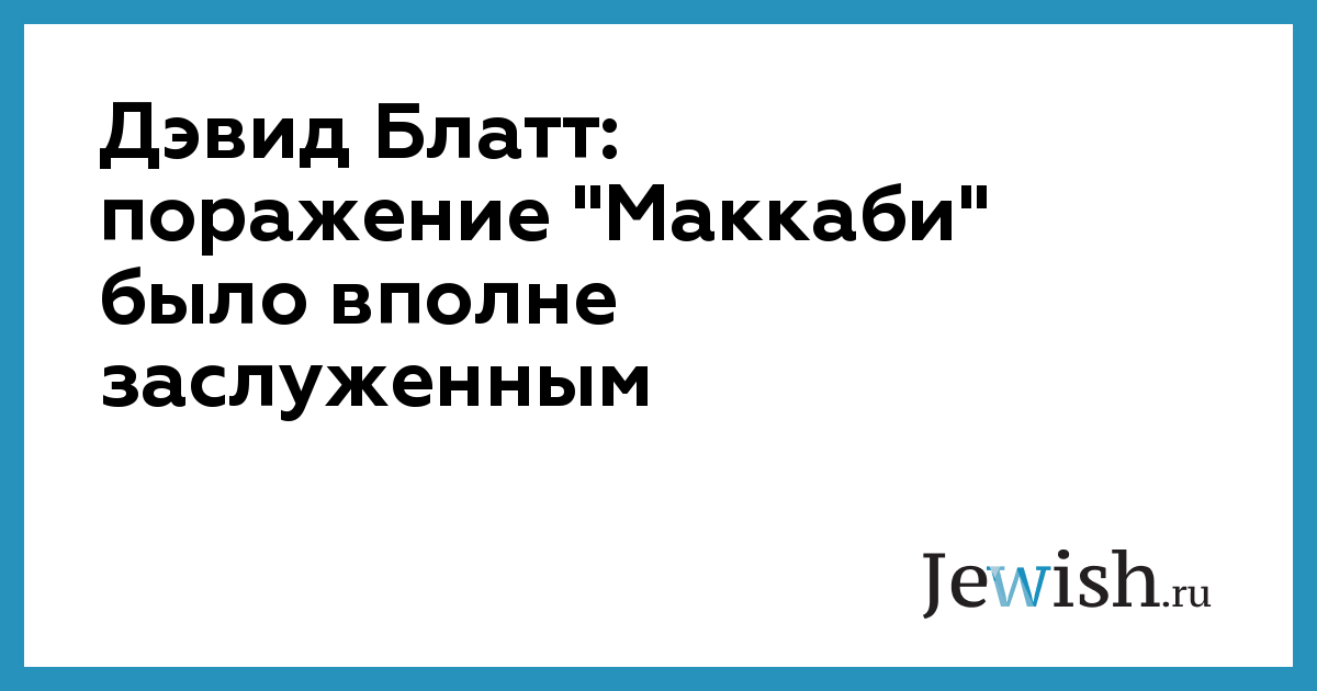 Дэвид Блатт: поражение "Маккаби" было вполне заслуженным