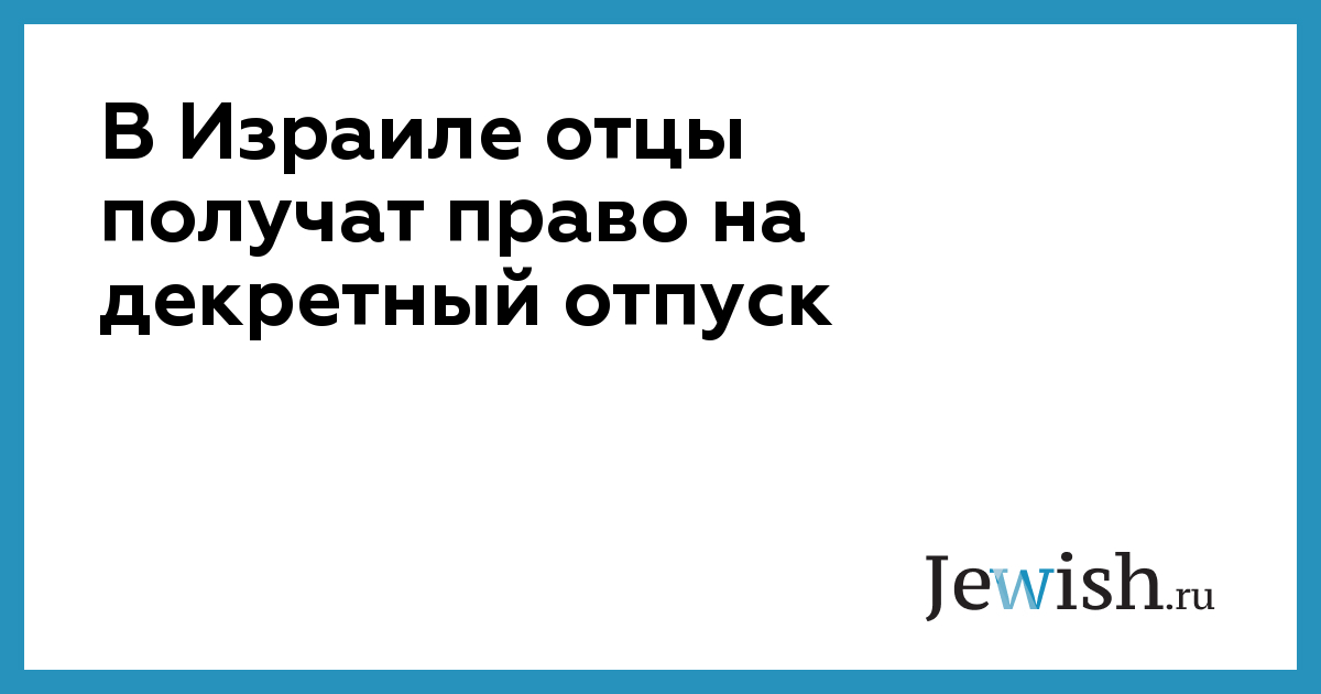 В Израиле отцы получат право на декретный отпуск