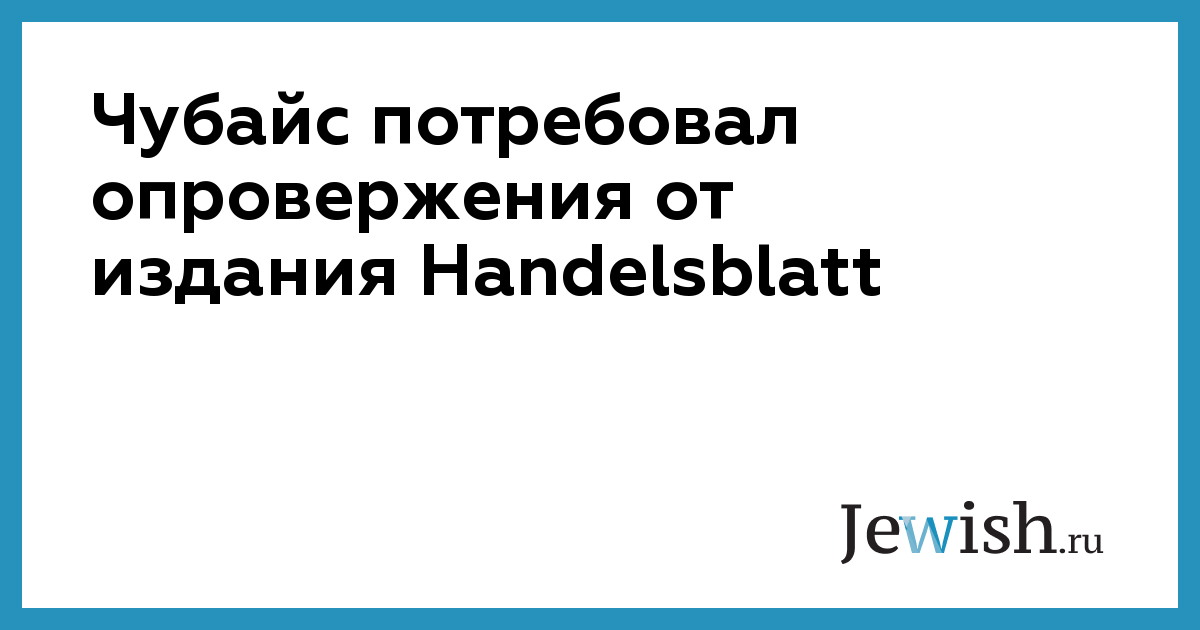 Чубайс потребовал опровержения от издания Handelsblatt