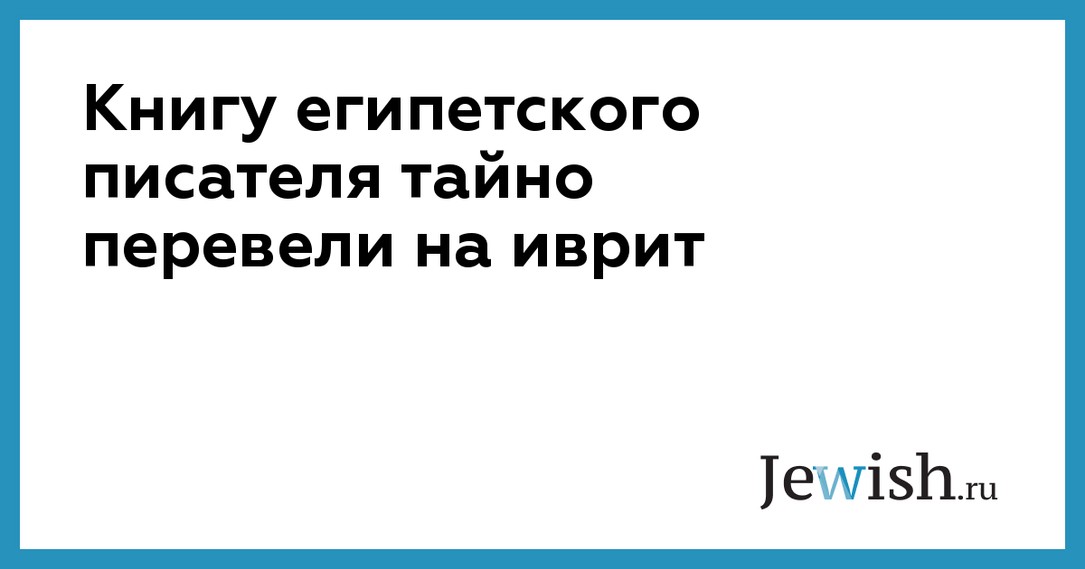 Книгу египетского писателя тайно перевели на иврит