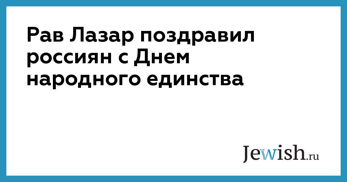 Рав Лазар поздравил россиян с Днем народного единства