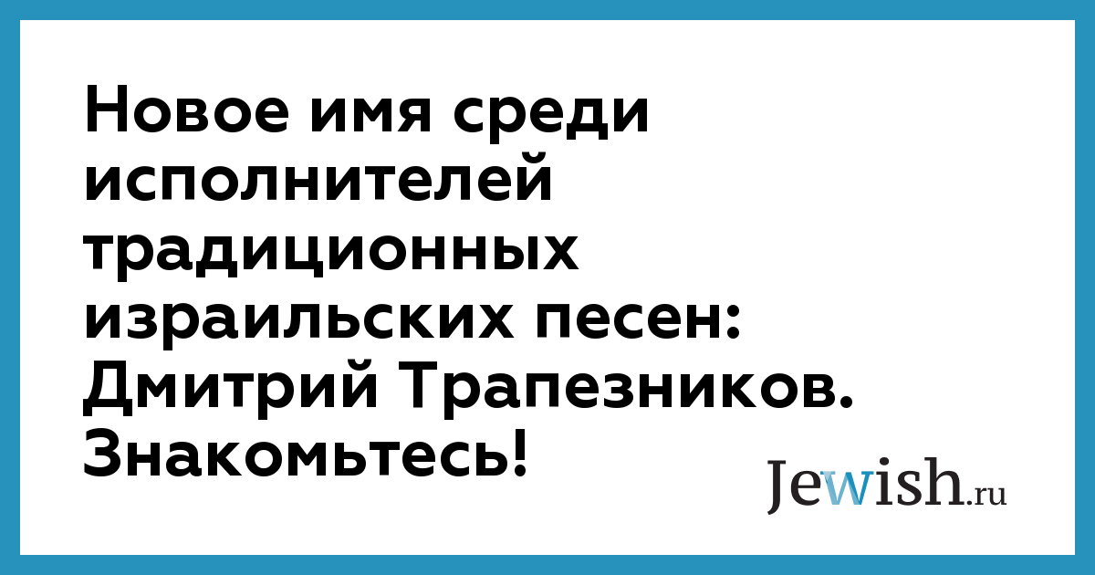 Новое имя среди исполнителей традиционных израильских песен: Дмитрий Трапезников. Знакомьтесь!