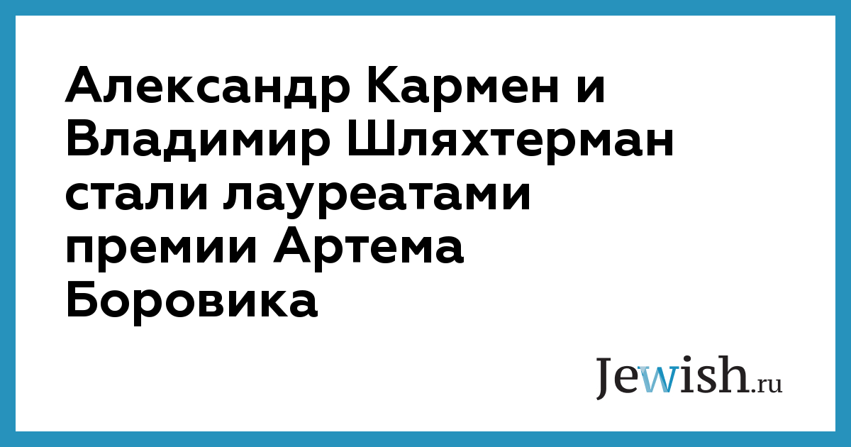 Александр Кармен и Владимир Шляхтерман стали лауреатами премии Артема Боровика