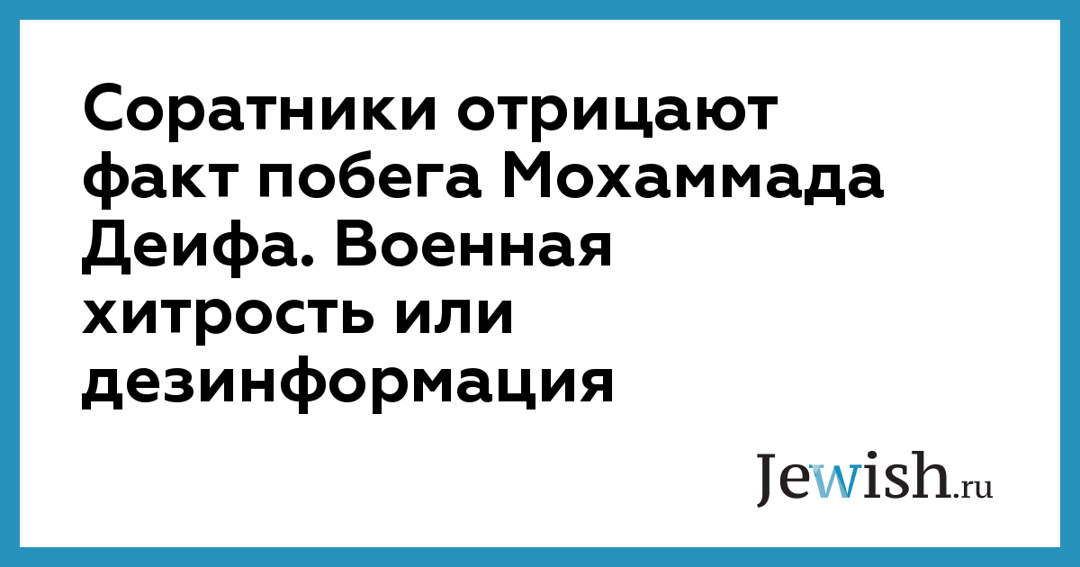 Соратники отрицают факт побега Мохаммада Деифа. Военная хитрость или дезинформация