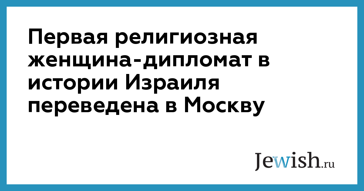 Первая в истории Израиля религиозная дипломат будет в ближайшее время командирована в Москву. Яффа Олевицкая будет знакомить россиян с израильской культурой, а также отвечать за связи с религиозной еврейской общиной России.