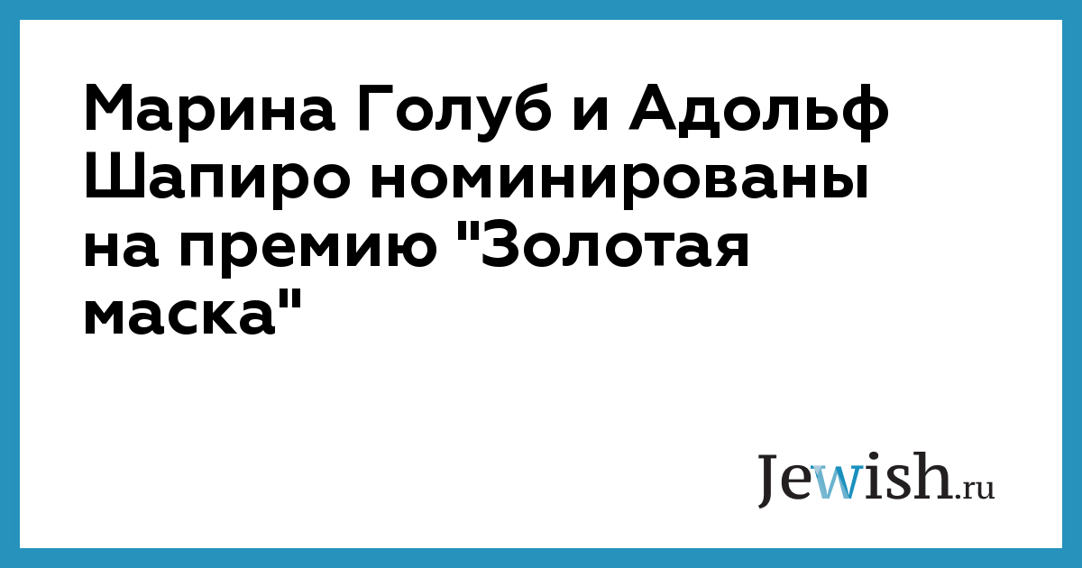 Марина Голуб и Адольф Шапиро номинированы на премию "Золотая маска"
