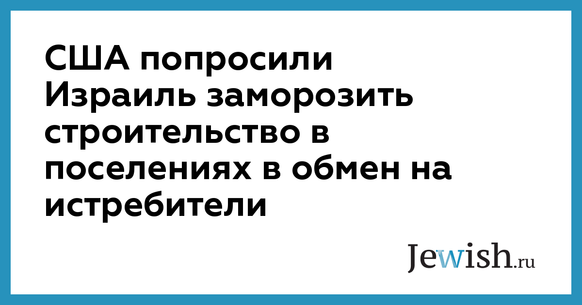США попросили Израиль заморозить строительство в поселениях в обмен на истребители