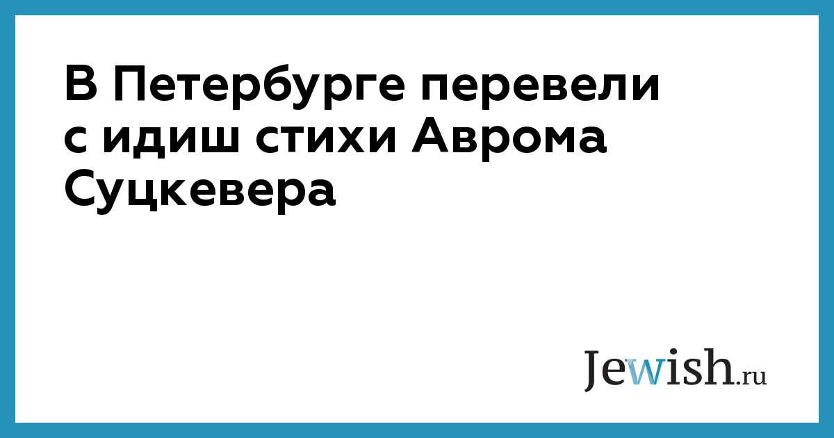 В Петербурге перевели с идиш стихи Аврома Суцкевера