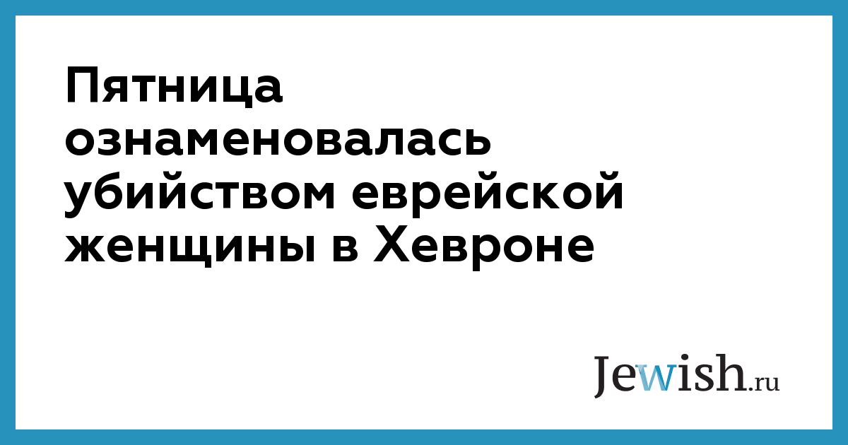 Пятница ознаменовалась убийством еврейской женщины в Хевроне