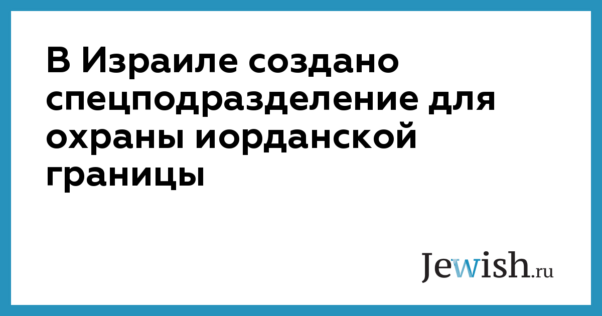 В Израиле создано спецподразделение для охраны иорданской границы