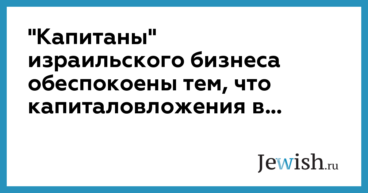 "Капитаны" израильского бизнеса обеспокоены тем, что капиталовложения в...