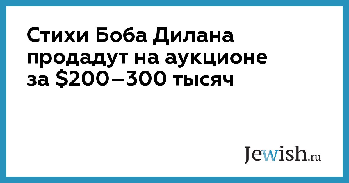 Стихи Боба Дилана продадут на аукционе за $200–300 тысяч