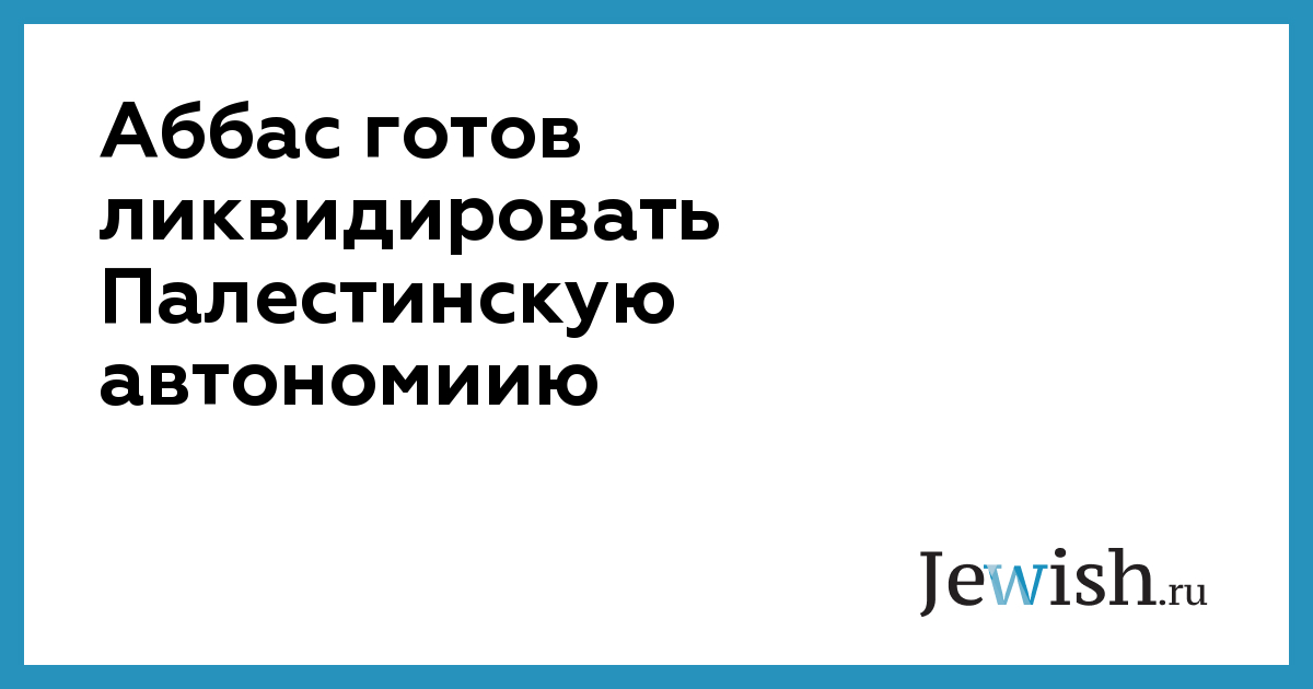 Глава Палестинской национальной администрации Махмуд Аббас заявил, что готов ликвидировать Палестинскую автономию, если Израиль продолжит строительство поселений на территории будущего государства Палестина. Выступая по палестинскому телевидению, он заявил, что не готов возглавлять "несуществующую администрацию", сообщает агентство Maan.