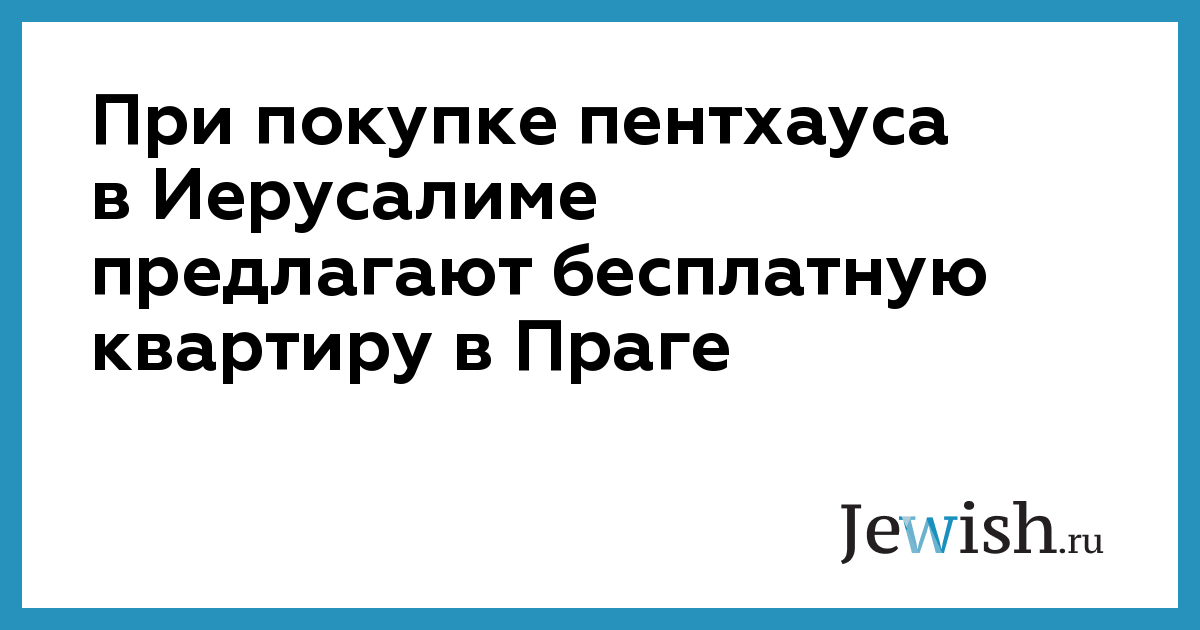При покупке пентхауса в Иерусалиме предлагают бесплатную квартиру в Праге