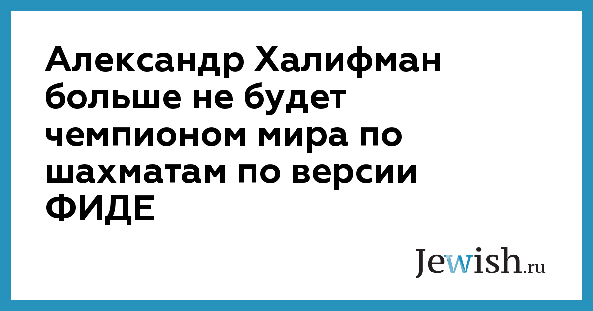 Александр Халифман больше не будет чемпионом мира по шахматам по версии ФИДЕ
