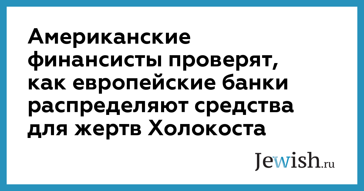 Американские финансисты проверят, как европейские банки распределяют средства для жертв Холокоста